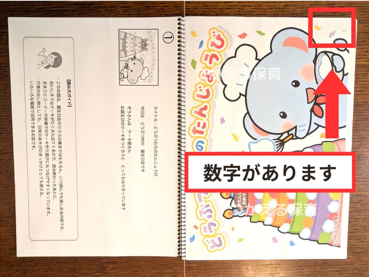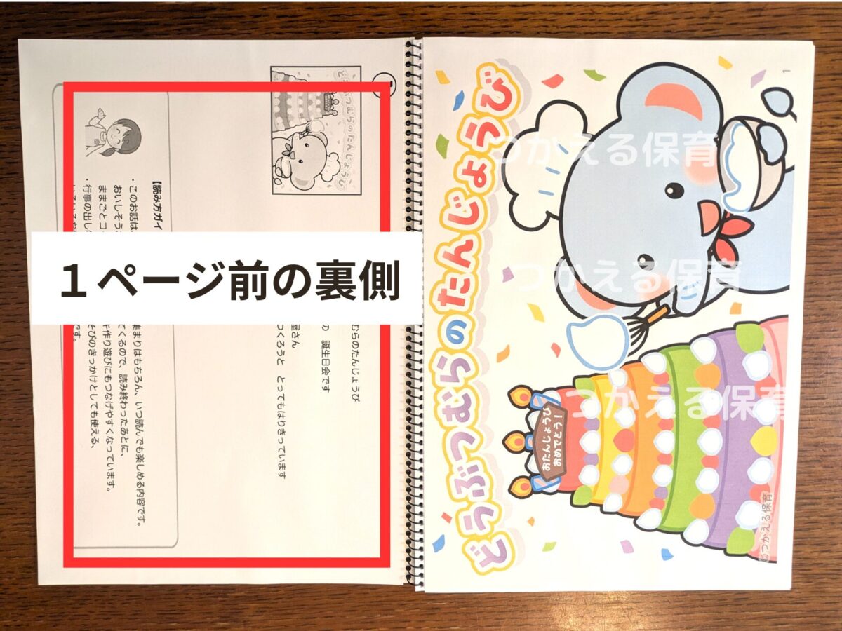 子どもたちに絵を見せたときに、裏にその絵のセリフがくればOKです。