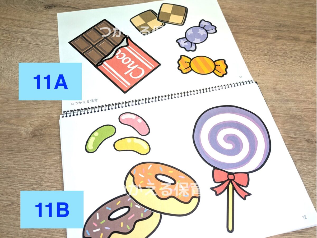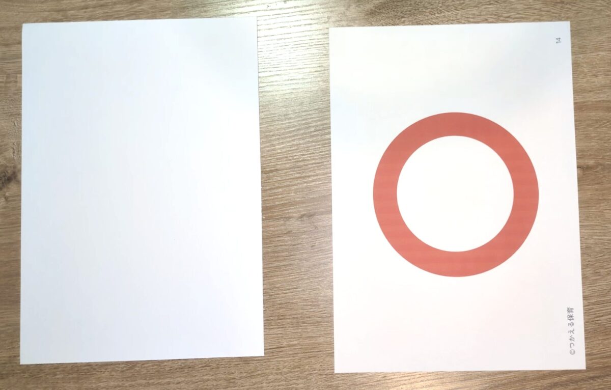 子どもたちに絵を見せたときに、裏にその絵のセリフがくればOKです。