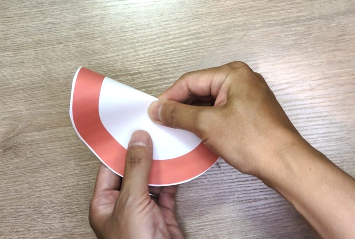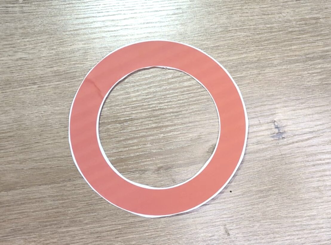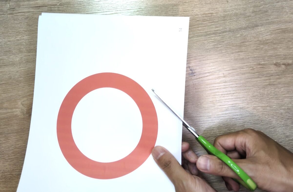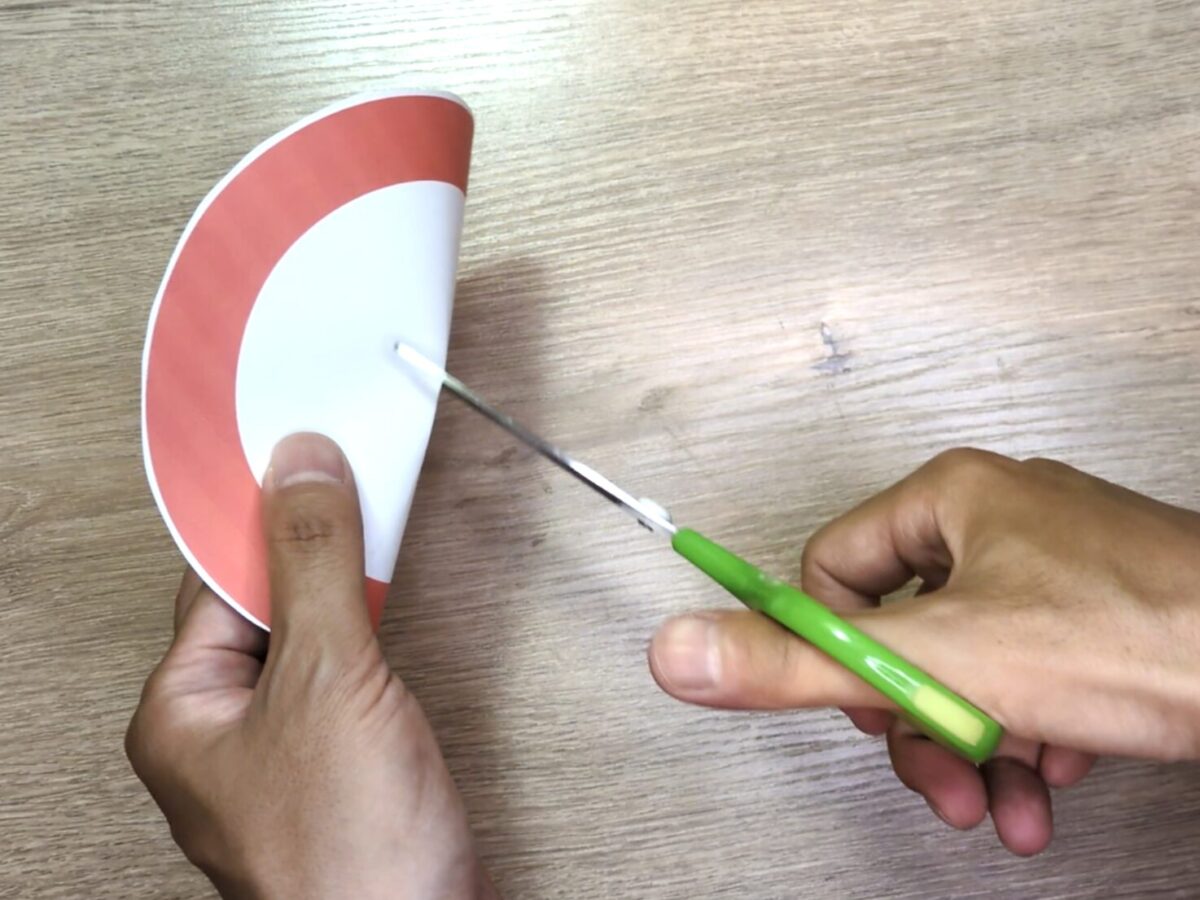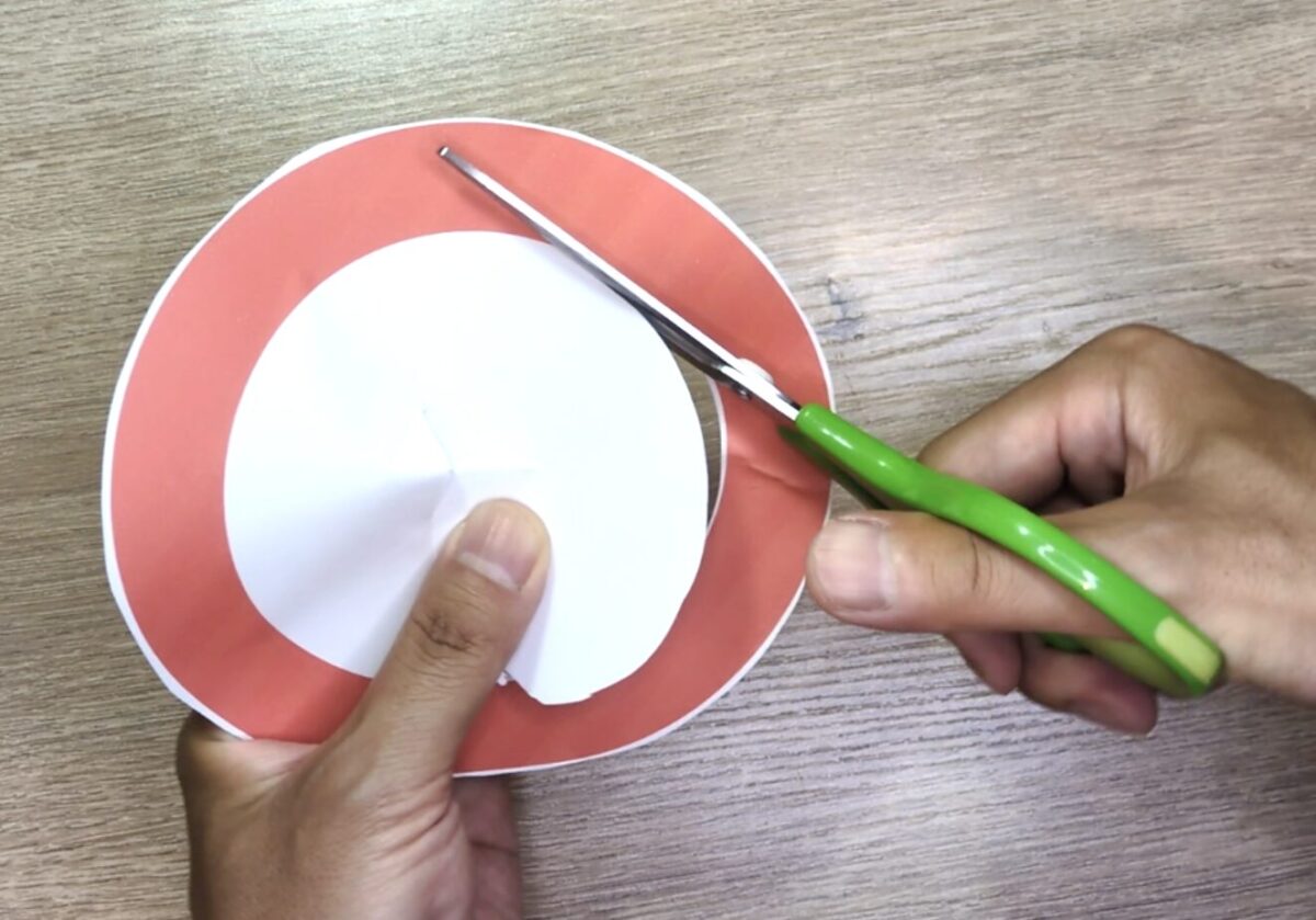 切り込みからハサミを入れて、赤丸の内側を切り取ります。