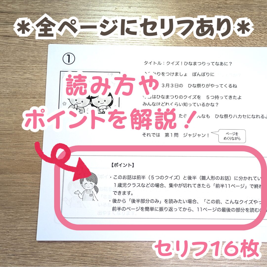5つのクイズでひなまつりの由来や意味がわかり、ひな人形たちのことが大好きになる、子ども参加型のスケッチブックシアターを作りました!